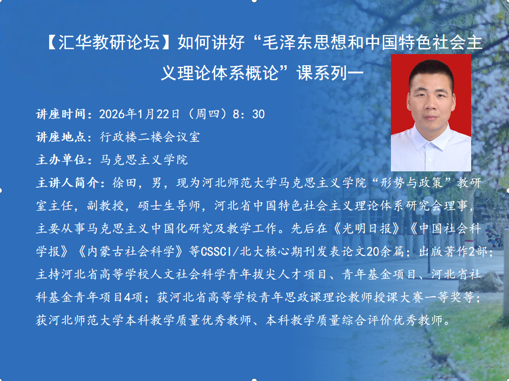 2026年寒假放假通知根据学院校历安排,现将beat365官网2026年寒假放假时间及有关事宜通知如下:一、1月24日(腊月初六,星期六)放假,3月1日(正月十三,星期日)全体师生报到,3月2日(正月十四,星期一)正式上课。二、寒假值班地点及联系电话地点:行政楼101室电话:(0311)80785888三、各单位要高度重视假期的校园安全工作,切实做好假期及春节期间学校安全管理工作。祝全体师生假期愉快! 学院办公室 2026年1月19日