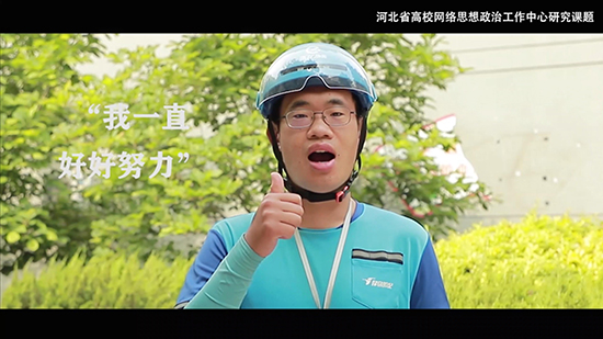 作品《无声胜有声》,是传媒学部《新闻业务实践》课程作业成果之一,由新闻学专业李尧、曹馨月、齐心妍等十名学生共同创作,冯维健、万传亮、罗怡然作为指导教师,同学们用新闻镜头记录下石家庄桥西区一名聋哑骑手——刘钊的生活轨迹,真实生动地呈现了他热爱生活、努力工作、积极乐观的一面。2012年,从天津理工大学聋人工学院毕业后,刘钊在石家庄从事了6年的网络开发工作,后为了方便照顾女儿,毅然转行成为了一名“外卖骑手”。通过对刘钊一天外卖工作的记录,这位“无声骑士”朴实、执著、坚强的形象呈现在观众面前,传递出残障人士积极向上、热爱生活的信心。(点击图片观看视频)