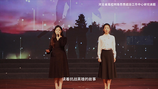 朗诵者以读抗战英雄的故事开头, 由此想起那段战火连连、硝烟弥漫的历史。当年,抗战先烈勇往直前、不屈不挠、奋勇杀敌、英勇牺牲的画面浮现在脑海。有很多无名的英雄,更是值得人民去深切缅怀的。由“诺尔曼·白求恩”引出“国际主义精神”。一个不远万里、热爱和平的人!这种精神,太值得后人学习和发扬了。现今,抗战英雄们的精神并没有随着时光的流逝而随时光悄悄地离我们远去。相反,这种精神却融入了每一个中国人的心中!