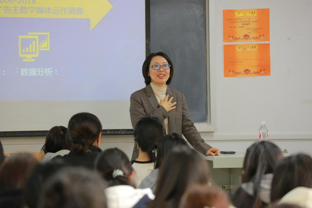 陈怡博士在第三实验楼312教室作题为“作为学科的广告和品牌”的学术报告。凭借丰富的理论研究和实践教学经验,陈老师重点阐述了广告学在现代社会中的核心地位,指出其作为多学科交叉融合的角色在推动社会经济发展中所起的重要作用。以媒介技术演进为切入点,她深入解读了广告与品牌从“传统媒体”到“数字生态”的转型,指出人工智能、大数据等技术正推动广告向“用户共创”模式转变,“品牌2025”目标在于通过精准算法和场景化内容进行构建。结合“打造数字广告生态系统”这一前沿课题,陈怡提出专业师生进化的“三维能力模型”,通过强化数据伦理、构建跨学科知识体系、深化产教融合,在“实践中不断完善理论、创新求真。讲座交流环节,师生就AIGC应用、Z世代消费心理等议题展开讨论,气氛热烈。