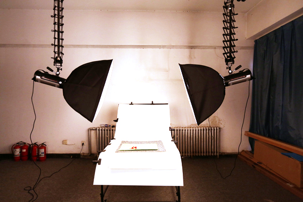 图-6 2014年建立的摄影实验室,配备十二台专业摄影灯、天花路轨、背景幕布、静物台、化妆台