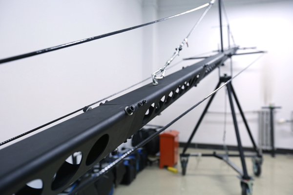 图-10 学部设备器材室,图为6米摄像摇臂,另有小型摇臂、拍摄套件、镝灯、轨道、监视器、反光板等设备