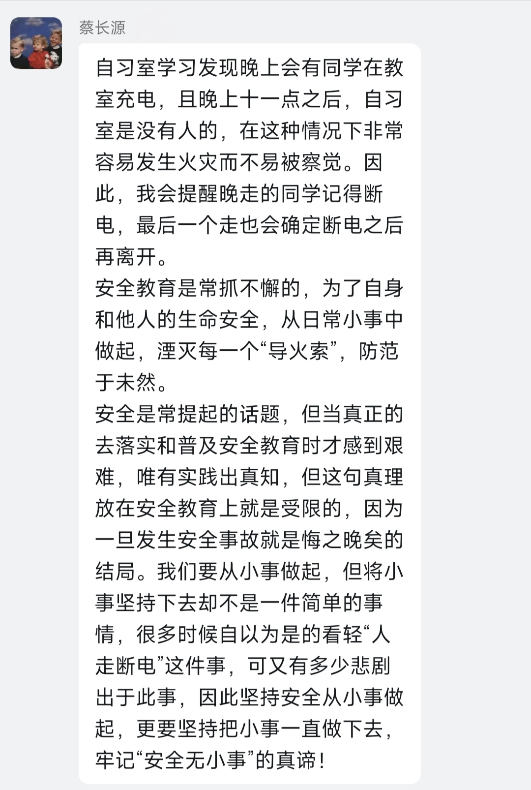 “明者防祸于未萌,智者图患于将来”。安全与我们息息相关,需要大家的共同维护。此次安全教育党性活动的开展,进一步夯实了党员的理想信念,锤炼了党性修养,进一步提升了全体党员的安全意识和安全防范水平,提醒大家将安全意识贯彻于工作、生活中,有效防范和遏制安全事故的发生,全体党员更加明确了对于维护校园安全的责任,为营造积极向上、安全和谐的校园环境贡献力量。