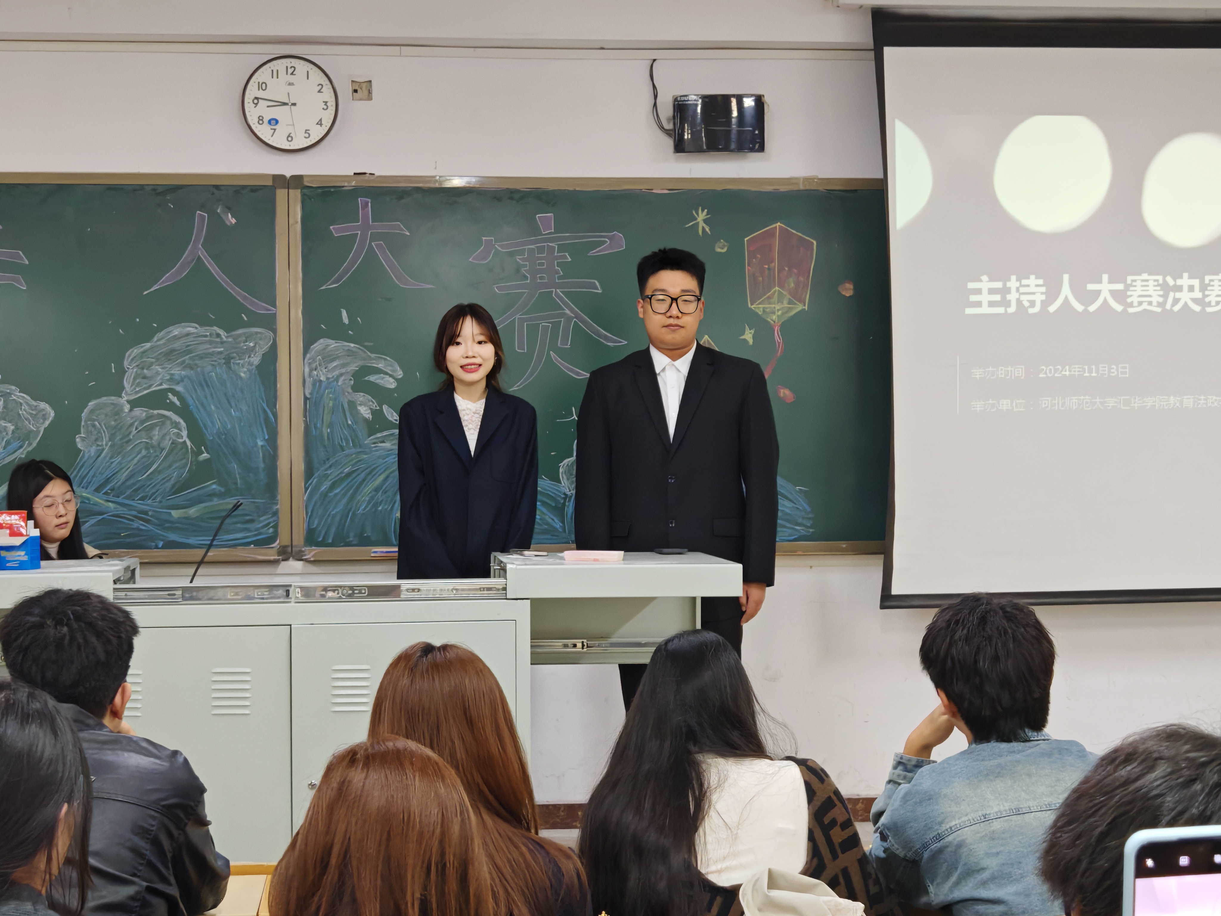 经过初赛的激烈角逐,共有10名优秀选手脱颖而出,成功晋级决赛。决赛现场,选手们通过自我展示和模拟主持两个精彩环节,充分展示了他们的专业素养、创新能力和主持风采。在自我展示环节,选手们从家乡美景、个人爱好、行为习惯等角度进行自我展示。而在模拟主持环节,选手们两两一组,分别就新生才艺秀、送老晚会、跨年晚会、以及二十四节气——立冬等主题进行了生动演绎,用声音传递力量,用语言诠释情感,赢得了评委和观众的一致好评。经过评委团的严格评选,最终何硕、崔雅萍凭借其出色的表现荣获一等奖,张一博、蔡依潾、曹莨婉荣获二等奖,付轩宁、葛冀航、栗紫涵、于鑫雨等荣获三等奖。