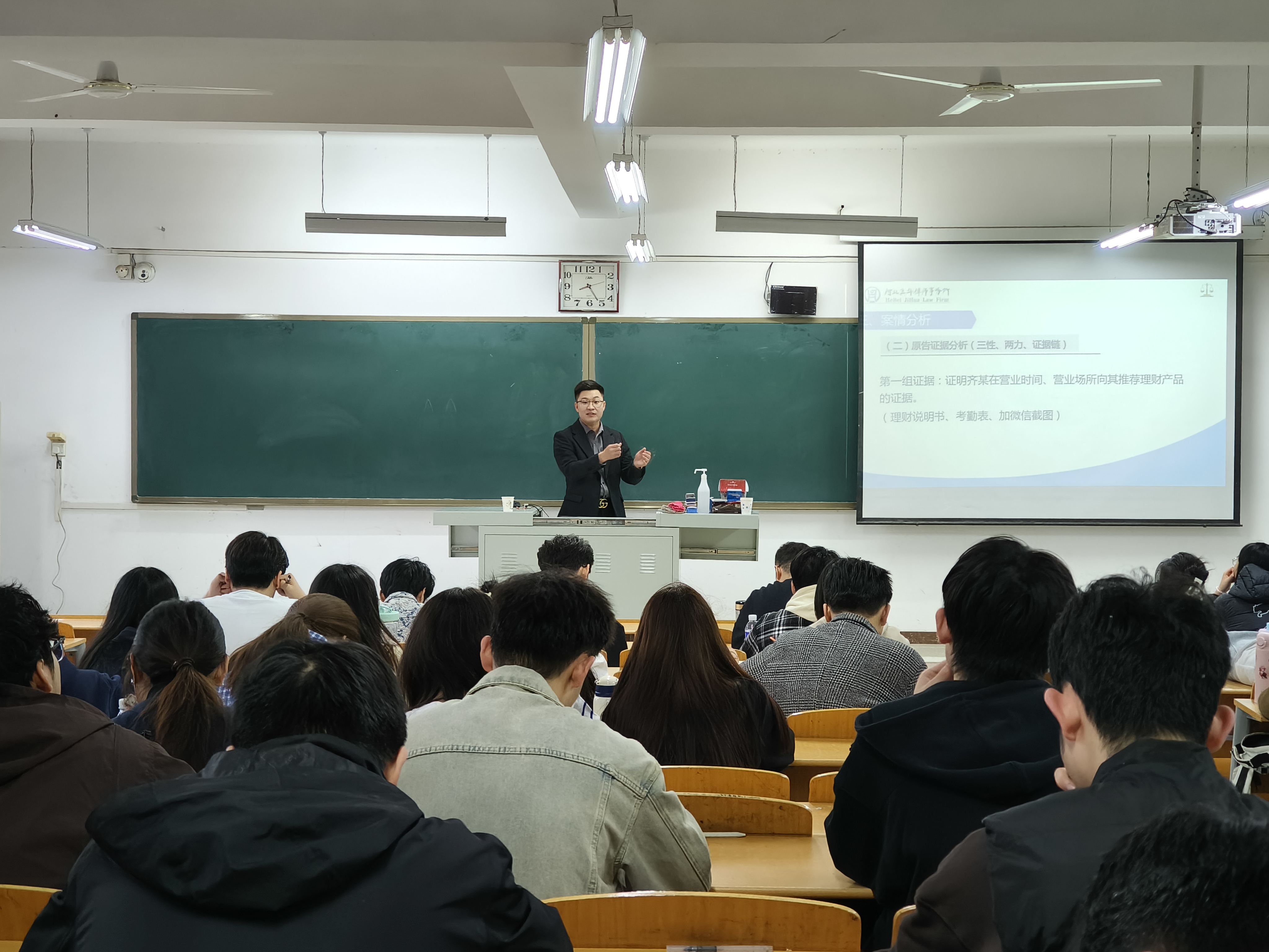法政学部举行“双师同育,赋能增长”律师进课堂系列活动第六讲-缩小 放大+ 2024-11-13为深化学生对法律知识的掌握并将其有效应用于实践,同时为未来的职业生涯打下坚实基础,增强学生的专业能力和竞争力,11月12日上午,法政学部邀请到了河北冀华律师事务所的资深律师卢鹏鹏,为2022级法学专业的学生们带来了一场题目为“从一则真实案例看民事诉讼证据的组合运用”的讲座。