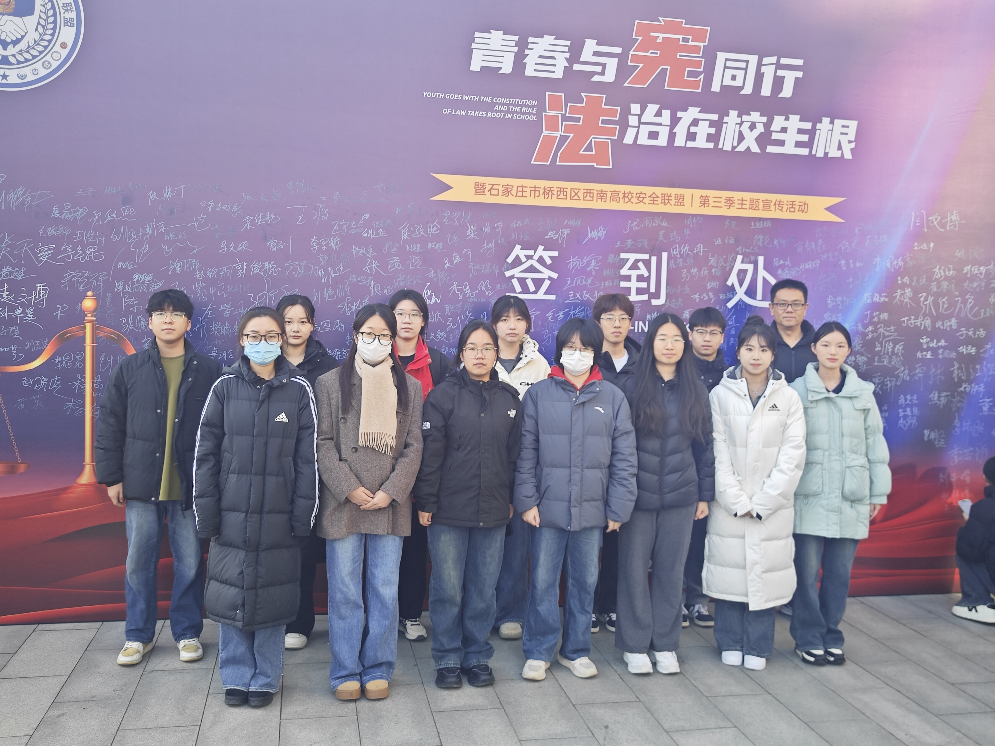 学部学生参与国家宪法日主题宣传活动-缩小 放大+ 2024-12-0512月4日,学部部分学生在学院安全工作处侯江博老师的带领下参加了由石家庄市公安局桥西分局举办,河北工业职业技术大学承办,石家庄市桥西区西南高校安全联盟组织的“青春与宪同行,法治在校生根”国家宪法日主题宣传活动。此次活动旨在提高大学生的宪法意识,让法治观念在校园内生根发芽。