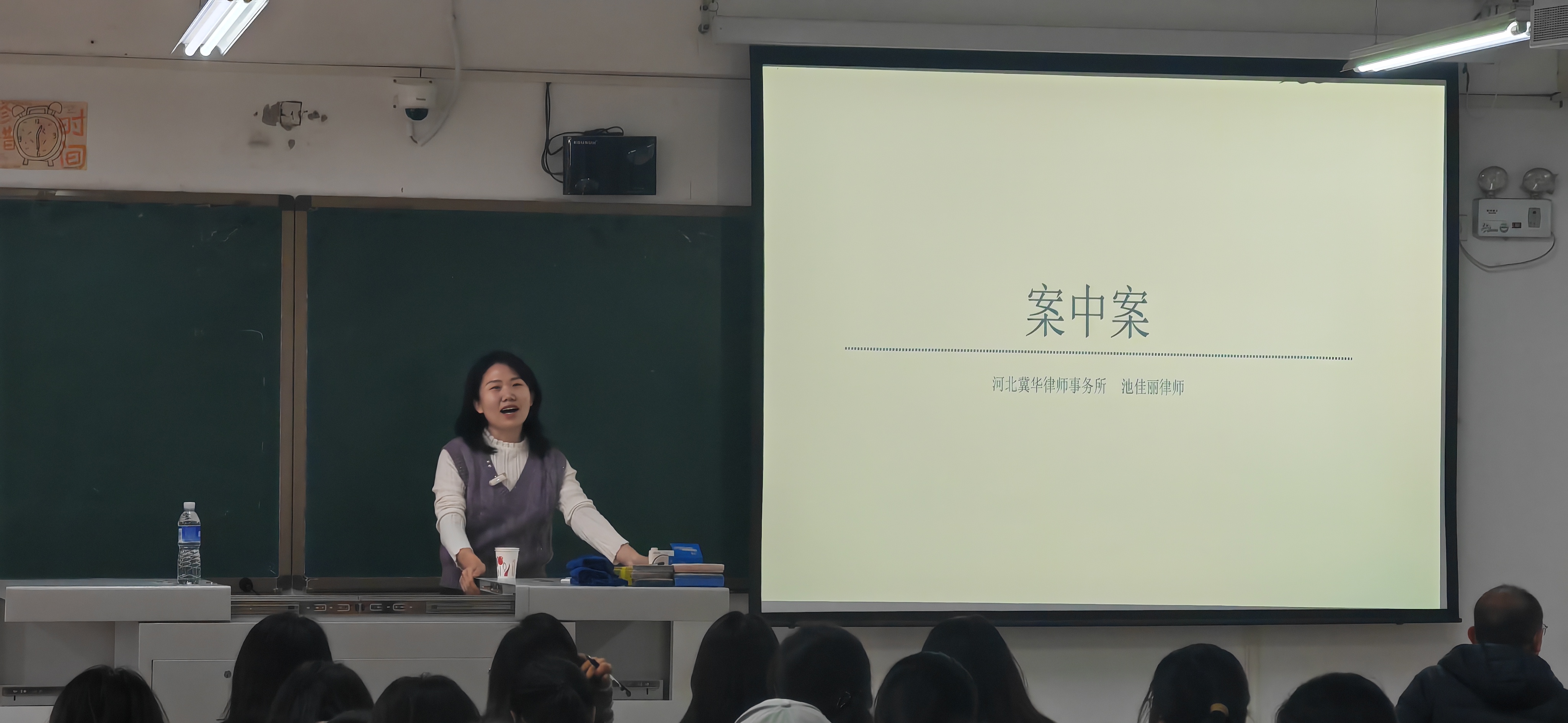 法政学部举行“双师同育,赋能增长”律师进课堂系列活动第二讲-缩小 放大+ 2025-11-07为深化法学专业实践教学改革,提升学生法律实务认知与应用能力,11月4日上午,法政学部“双师同育,赋能增长”律师进课堂系列活动第二讲在第六教学楼403教室顺利开讲。本次活动特邀河北冀华律师事务所池佳丽律师担任主讲嘉宾,以“案中案与反诉案件的实务解析”为主题,为法学专业学子带来了一场理论与实践深度融合的专题讲座。 讲座中,池佳丽律师立足自身丰富的执业经验,以一起融合借款合同纠纷与侵权责任认定的典型复杂案件为切入点,系统拆解了案中案“法律关系交织、事实查明困难”的核心特征。她通过逐层梳理证据链条、解析法律适用逻辑,向同学们演示了如何在错综复杂的案情中精准定位争议焦点、找准案件突破方向,让抽象的法律理论转化为可感知的实务技巧。 针对反诉案件这一实务重点,池律师重点阐释了“基于本诉事实精准提炼反诉主张”“依托法律依据构建完整反诉逻辑”的核心策略。结合多起反诉成功与失败的对比案例,她详细讲解了反诉请求的合理性设计、证据材料的针对性收集以及庭审中的攻防技巧等关键要点,清晰厘清了反诉与本诉的联动关系,为同学们构建了完整的反诉实务知识框架。 互动答疑环节气氛热烈,同学们围绕“复杂案件中关键证据的固定方法”“新型民事纠纷的法律适用边界”等实务难题,以及法考备考中的重点难点积极提问。池佳丽律师结合执业经历与备考经验,对同学们提出的问题逐一进行了解答。 此次讲座有效打通了法学理论与实务应用的衔接壁垒,不仅拓宽了学子们的专业视野,更为其法律职业规划与备考方向提供了精准指导,为培养高素质法治人才筑牢实践根基。法政学部将持续深化“双师同育”人才培养模式,常态化推进“律师进课堂”系列活动,不断搭建产学研深度融合的实践教学平台,助力法学专业学子实现从“知识习得”到“能力提升”的高效转化。