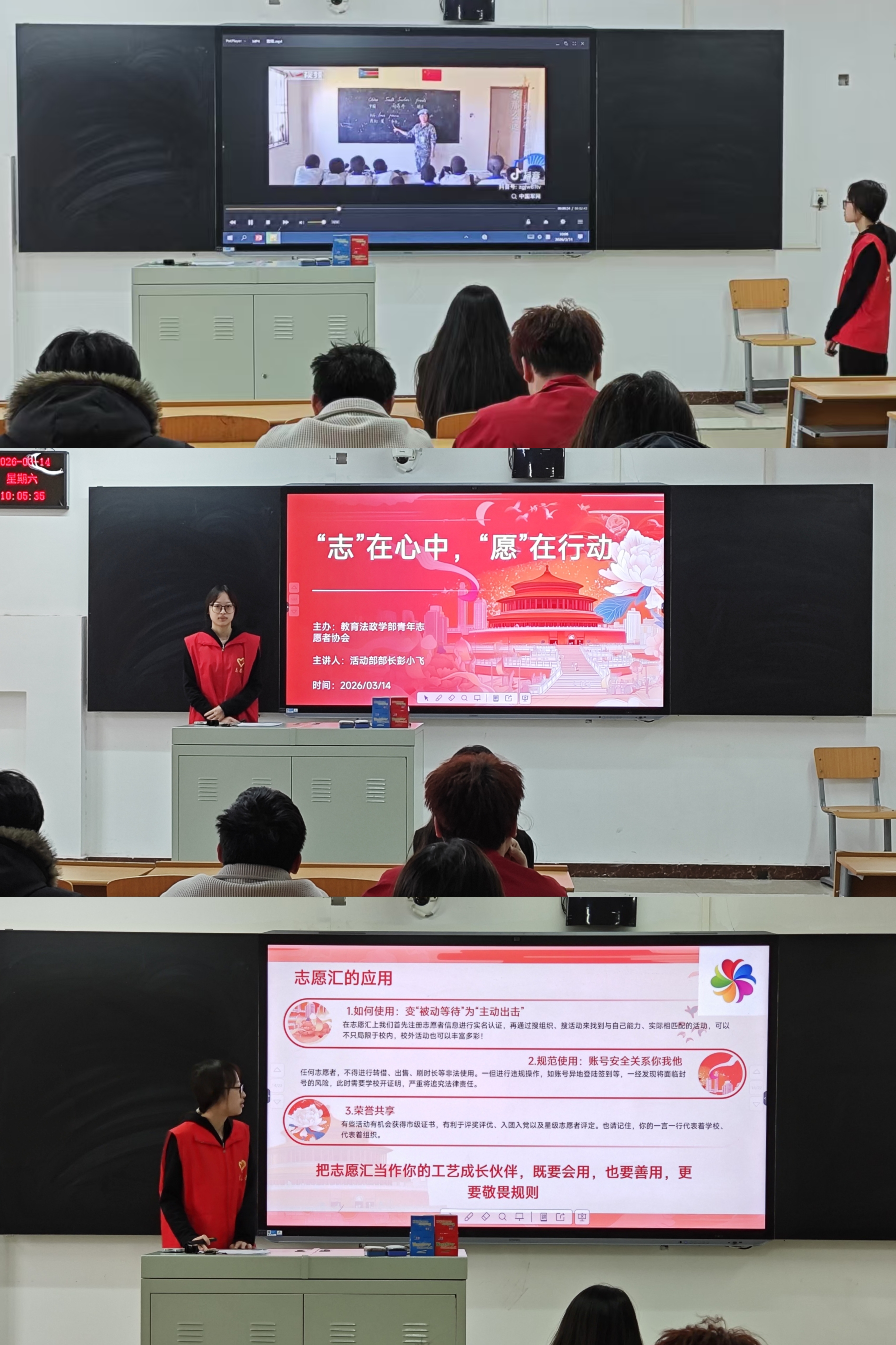 “志”在心中,“愿”在行动-缩小 放大+ 2026-03-173月14日,学部青年志愿者协会于第六教学楼开展“‘志’在心中,‘愿’在行动”主题志愿培训活动。 本次培训活动形式丰富、内容扎实,以理论讲解、视频展播、交流探讨为主要环节有序开展。活动伊始,“志愿第一讲”专题理论讲解拉开帷幕,主讲人结合PPT课件,系统讲授志愿服务相关知识,为志愿者们搭建起专业的志愿认知框架;培训过程中,穿插开展“榜样的力量”主题视频展播,通过观看雷锋同志珍贵影像资料与全国优秀志愿服务项目纪实短片,让志愿者们直观感受志愿精神的内涵,并由主讲人结合视频内容提炼出志愿服务的实用方法与技巧;活动最后,以“我身边的雷锋”为核心议题开展分组交流探讨会,志愿者们围绕学习收获、对志愿服务的新认知各抒己见,在思想碰撞中深化理解。 此次志愿培训活动,不仅让志愿者们进一步领悟了雷锋精神与“奉献、友爱、互助、进步”的志愿精神的时代价值,更通过系统化的讲解,提升了大家的志愿服务专业技能,为后续开展校园、社区志愿服务工作筑牢了能力基础。参与志愿者纷纷表示,将以此次培训为契机,把所学所悟转化为实际行动,以专业的服务、坚定的担当践行志愿初心,在志愿服务中书写新时代的雷锋故事。 ![]() 阅读次数:55