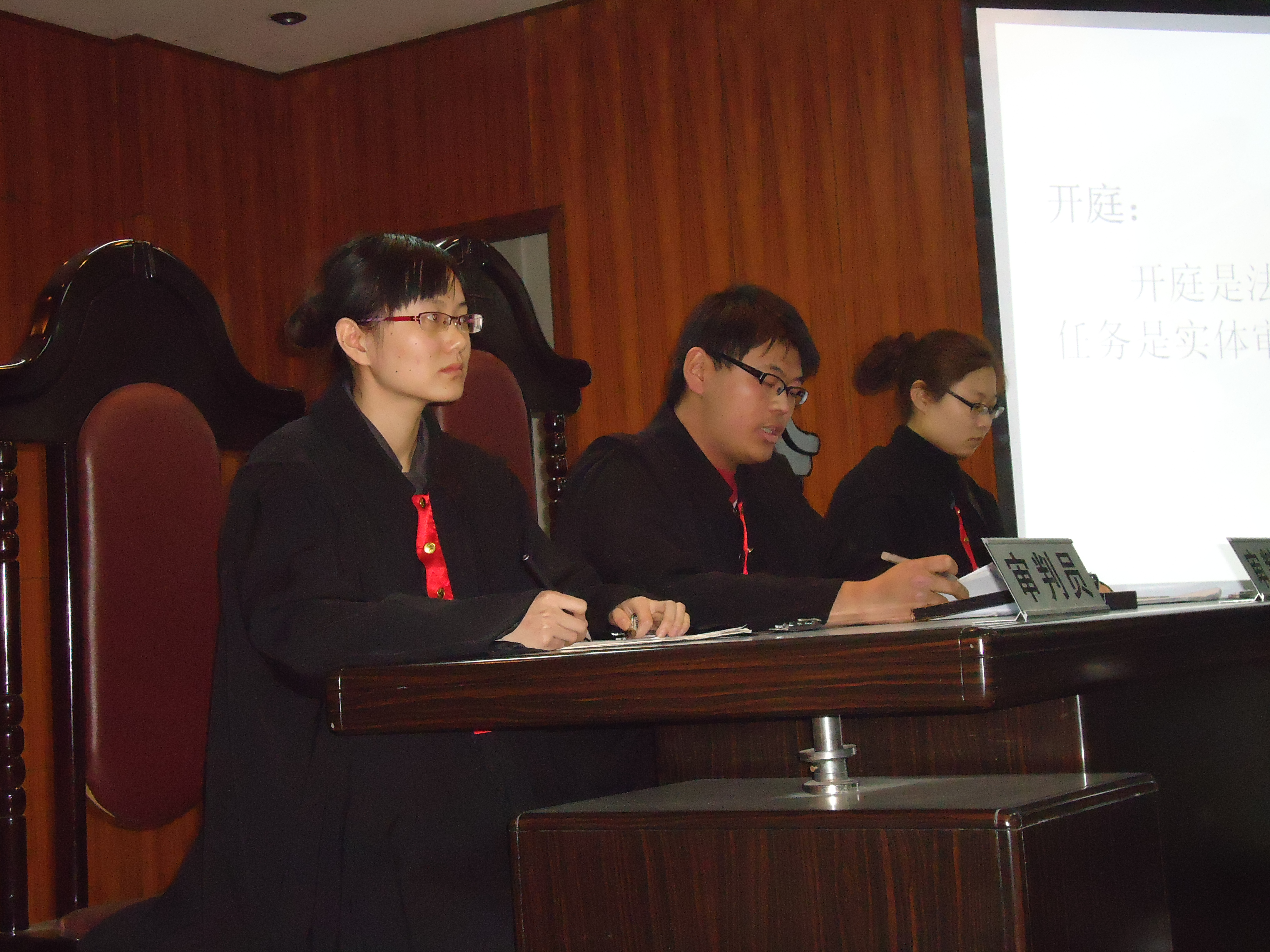 法政学部模拟法庭简介-缩小 放大+ 2013-05-31法政学部的模拟法庭建于2004年,面积约100平方米,可容纳100人左右,位于beat365英国官方网站南院。模拟法庭由beat365英国官方网站投入建设,按最高人民法院审判庭设的计要求来建设,硬件设施方面在河北省属于较高水平。模拟法庭是法政学部的一个特色项目,主要面向法政学部法学专业全体学生,是法学专业学生校内实践与实训的重要基地。目前模拟法庭开设课程主要是有民事模拟审判、刑事模拟审判、行政模拟审判等。任课教师通过精选案例,组织同学分担法官、审判员、书记员、原告、被告、证人、律师、法警等角色,经过教师和同学共同研读案例,广泛收集法律依据,反复推敲法庭用语,进行法律推理,将所选案件重演,审判程序完全模拟正规审判进行。 模拟法庭的实践教学,不仅使同学们熟悉司法审判的实际过程,熟悉与案件相关的实体法和程序法,同时,同学们将平日所学的法律条文、法学理论知识与审判实际结合起来,充分调动了学生学习的主观能动性,有效地培养和锻炼了他们发现问题、分析问题和解决问题的能力,提高了他们的思辩能力、语言表达能力、应变能力和团结协作能力,提升了他们的法学专业素养和综合素养,达到良好的教学效果。 法政学部的法学专业多年来始终坚持理论和实践相结合的教学模式,充分利用模拟法庭作为第二课堂活动来巩固第一课堂的教学效果。通过在模拟法庭中公开模拟审理各种案件,一方面能为法学专业的学生提供直观感性的实践经验,进行以自我为中心的法律实践,了解法律审判程序、法律法规的运用,加强对实体法和程序法的理解和认识,强化学生在实际法律活动中分析问题和解决问题的能力,另一方面起到在大学校园内普及法律知识的作用,对法学专业实践性教学活动的开展起到了积极的推动作用。通过模拟法庭教学训练,可以提高学生法庭审判组织能力、语言表达艺术和辩论口才,强化学生对有关刑事诉讼法、民事诉讼法、行政诉讼法、刑法、民法、行政法以及其它相关法律规范的理解和运用,增强学生对未来司法工作的适应性。