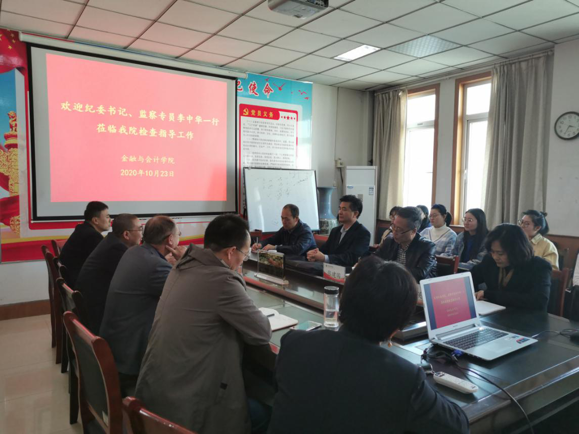 10月23日下午,校纪委书记、监察专员李中华带领校纪委副书记杨成、张建国及综合室主任曹瑛一行到beat365检查指导工作,beat365官方网站领导班子成员参加会议,辅导员列席会议。