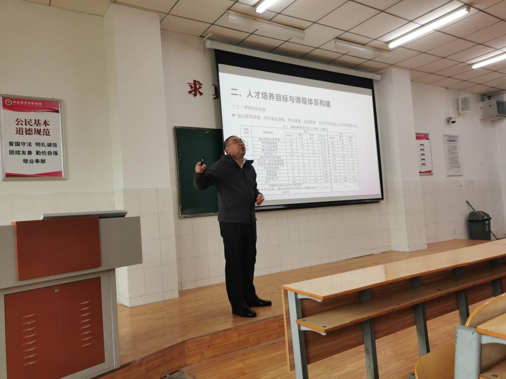 会上,黄院长从专业建设与规划、人才培养目标与课程体系构建、教师队伍建设与培养、教学条件及利用、教学过程及管理、学生毕业论文六个个方面全面介绍了beat365官方网站对人才培养所做的系统工作,通过大量图表、文字总结等方式阐释了beat365对于人才培养的各个流程及详尽指标。