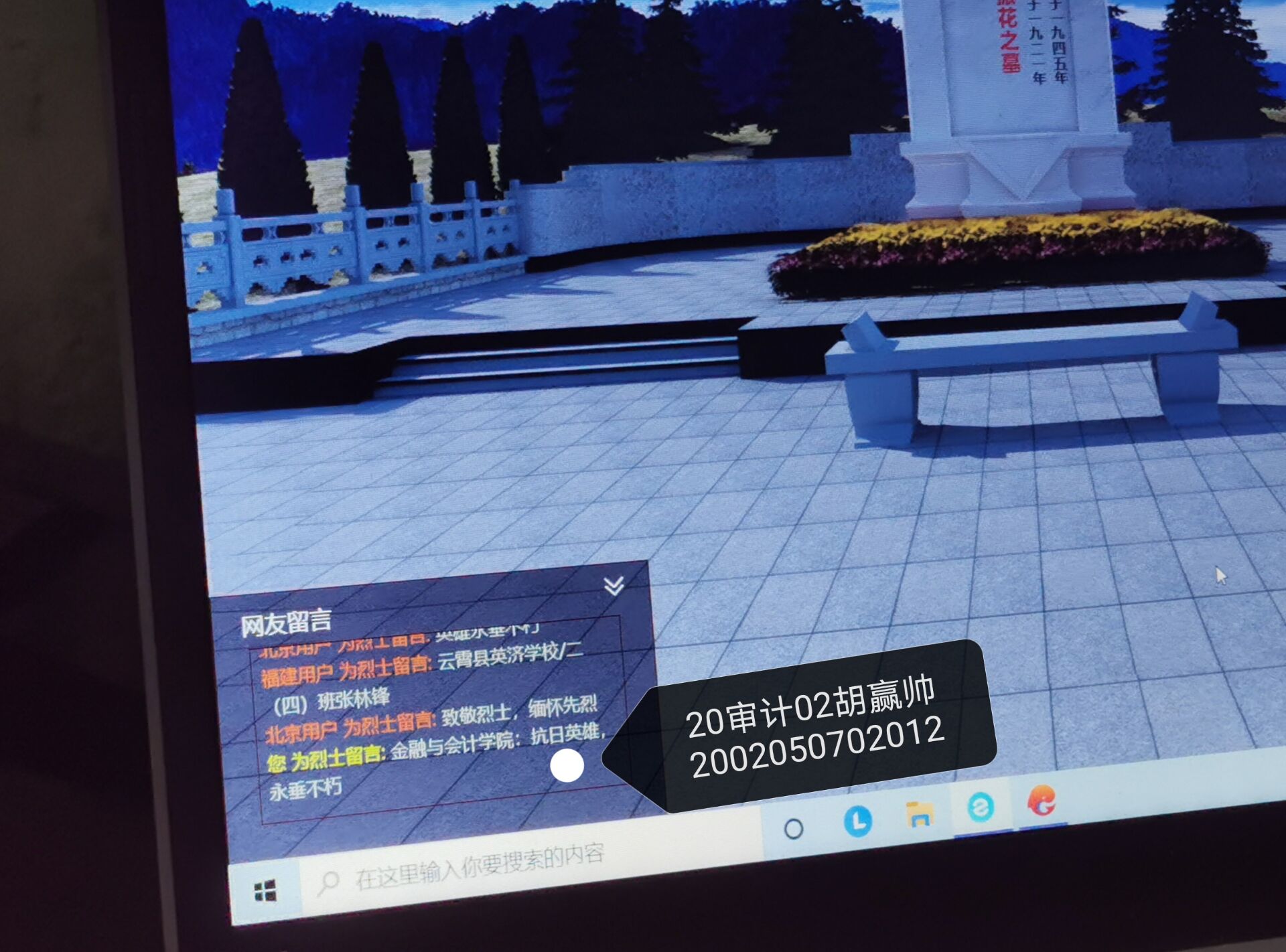 “向先烈学习,向先烈致敬!您们永远活在我们心中!勿忘国耻,爱我中华!”——20金融01刘月