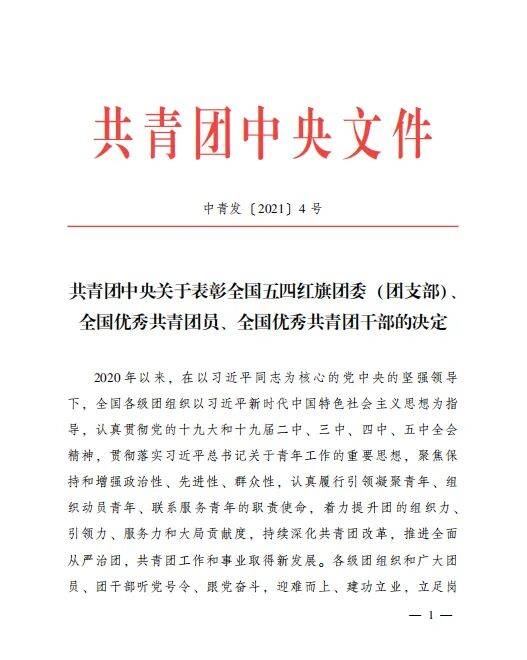 在迎接建党100周年之际,由共青团中央传来喜讯,在公布的《关于表彰全国五四红旗团委 (团支部)、全国优秀共青团员、 全国优秀共青团干部的决定》(中青发〔2021〕4号),beat365官方网站被授予“全国五四红旗团总支”荣誉称号,这是共青团中央授予基层团组织的最高荣誉,也是beat365团委继2016年获得河南省“五四红旗团总支”荣誉之后的又一次突破。