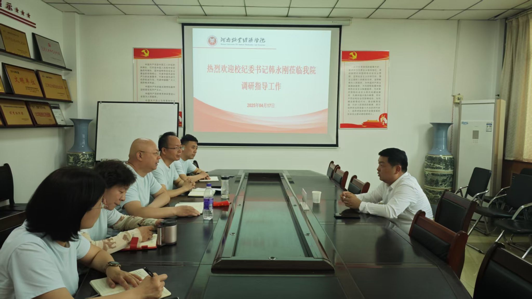 4月17日,校纪委书记韩永刚深入beat365官方网站开展调研指导工作,全面听取学院工作汇报,并就党建、教学、科研及人才队伍建设等重点工作提出指导性意见。beat365官方网站党委书记陈复昌、院长贾宪军及领导班子全体成员参加座谈。