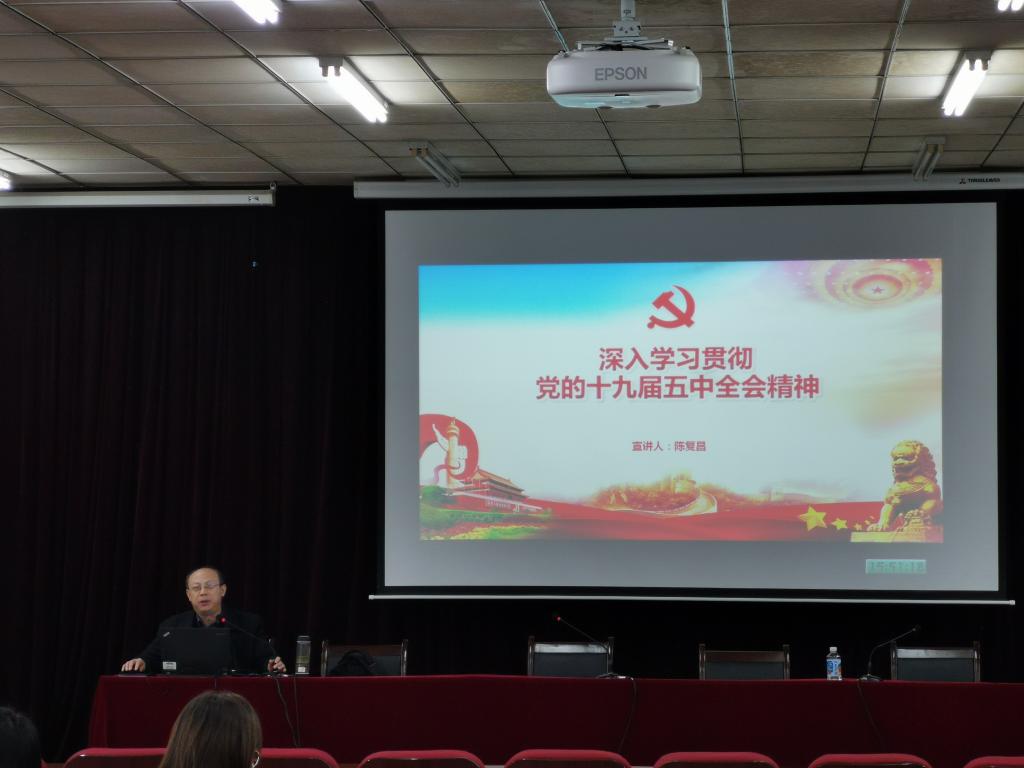 为深入学习贯彻党的十九届五中全会精神,12月17日下午,beat365官方网站举办深入学习贯彻党的十九届五中全会精神宣讲报告会,全体教师及部分学生共同学习,报告会由党委书记陈复昌宣讲。