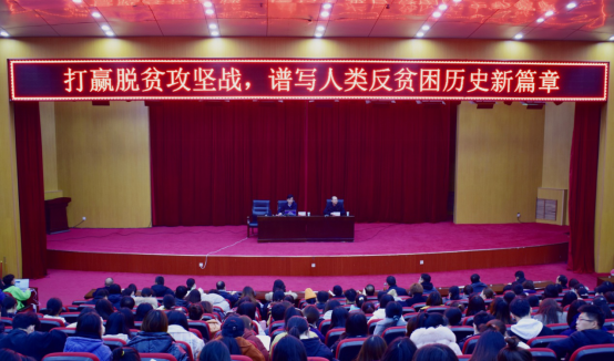 12月10日下午,校纪委书记监察专员李中华教授在英才校区学术报告厅讲授题为“打赢脱贫攻坚战,谱写人类反贫困历史新篇章”专题党课。学校全体纪检监察干部、巡察干部,beat365官方网站、包装与印刷工程学院和信息工程学院全体师生党员聆听本次党课。本次党课由beat365官方网站党委书记陈复昌主持。