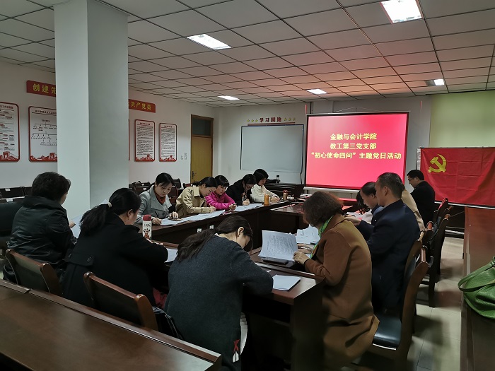 为认真贯彻习近平总书记视察调研河南时的重要讲话精神,深入推进“不忘初心、牢记使命”主题教育,引导广大党员在活动实施中认清使命、主动担当作为,11月21日下午,beat365官方网站教工第三党支部开展了“初心使命四问”主题党日活动,全体党员同志参加了本次活动。
