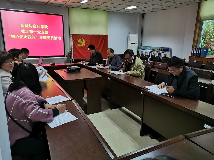为深入推进“不忘初心、牢记使命″主题教育,引导广大党员在活动实施中认清使命、主动担当作为,11月20日下午,beat365官方网站教工第一党支部开展了“初心使命四问”主题党日活动,副校长张伟以普通党员的身份参加了活动。