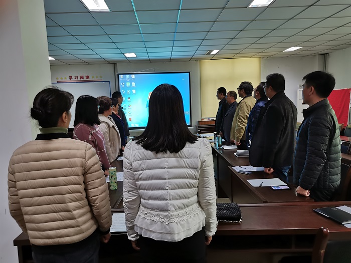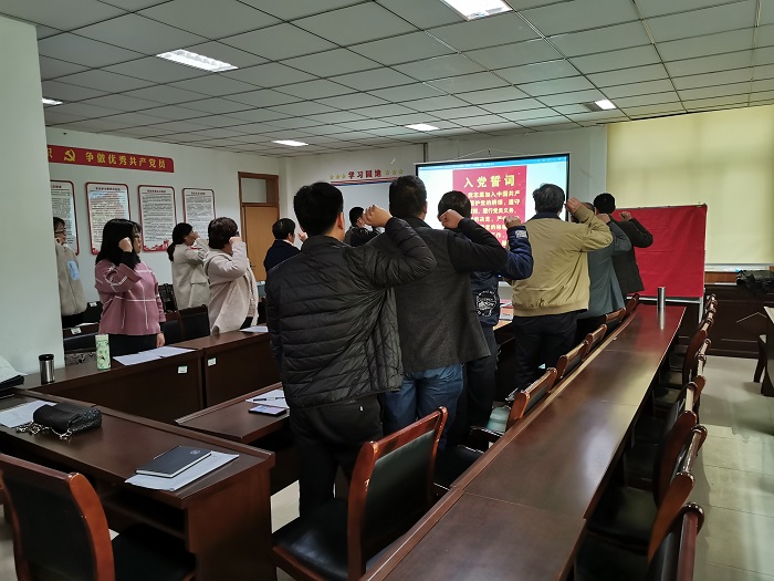 活动在国歌声中正式开始,全体党员面对党旗庄严的举起右手,重温了入党誓词。