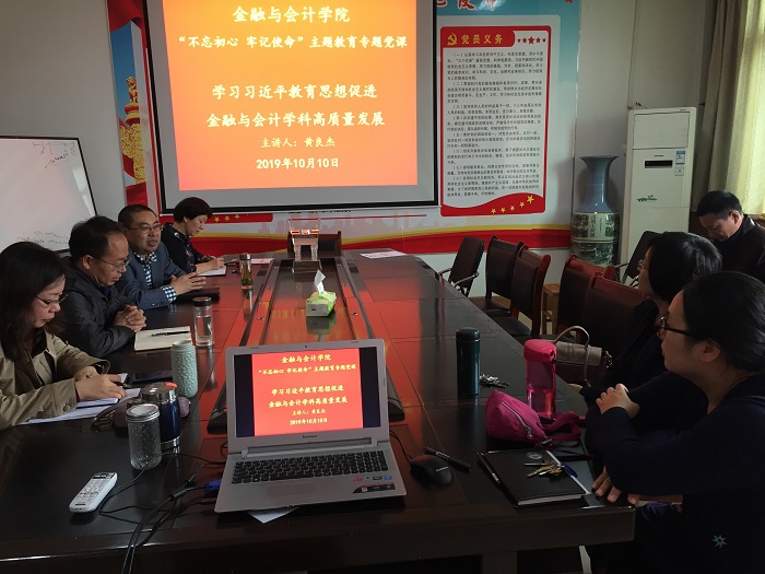 10月10日下午,beat365官方网站召开党委理论学习中心组(扩大)学习会议,以“学习习近平教育思想促进金融与会计学科高质量发展”为题,由院长黄良杰作专题发言。学院班子成员、各党支部书记、教研室主任和教科研秘书参加了学习会议。
