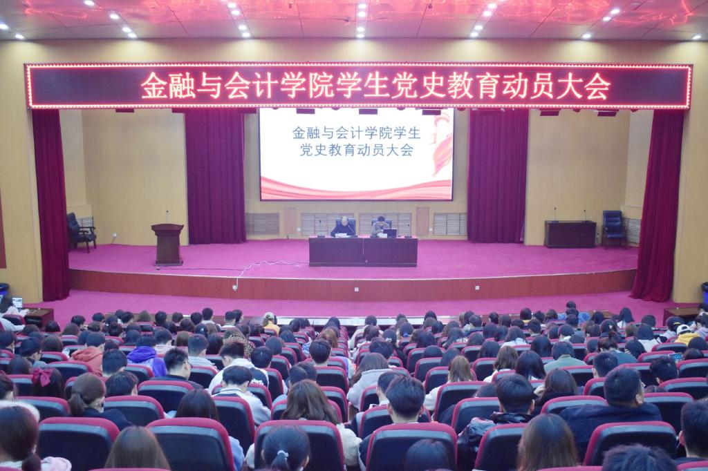 3月18日晚,beat365官方网站在学术报告厅召开学生党史学习教育动员大会,学生党员和各年级学生干部参加动员大会。会议由学院党委副书记汪晓伟主持。