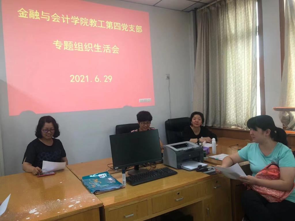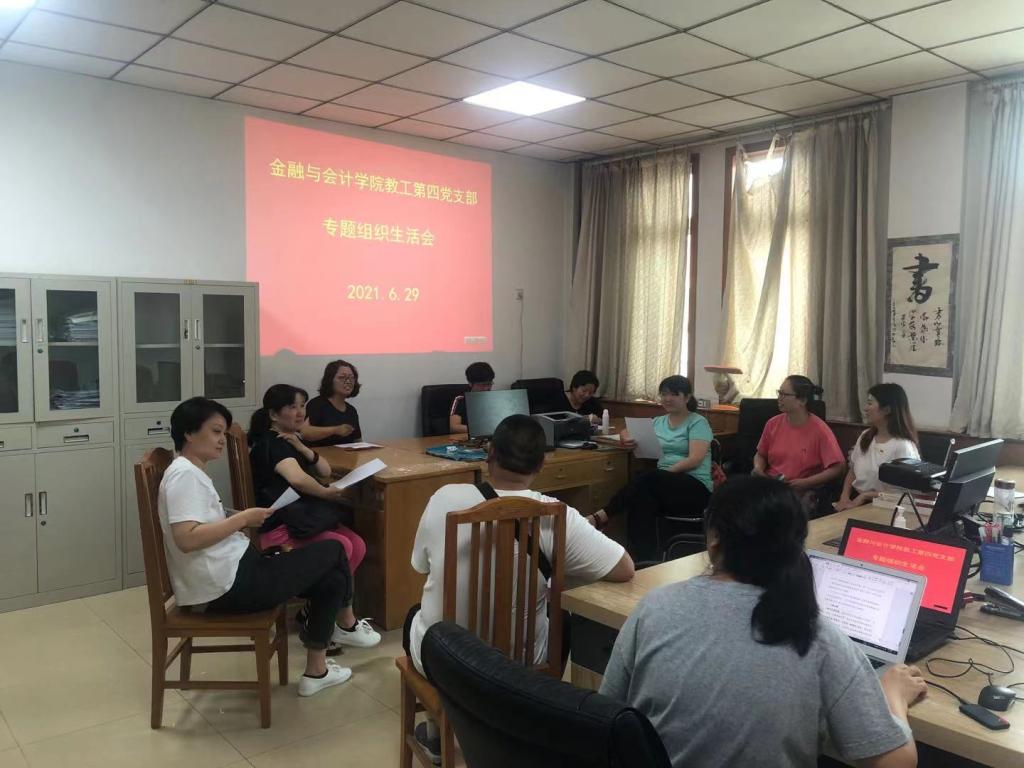 按照学校组织部《关于开展2021年6月份党支部主题党日活动的通知》精神和具体要求,6月29日下午,beat365官方网站教工第四党支部在510室召开了党史学习教育专题组织生活会。会议由党支部书记邓瑜主持。
