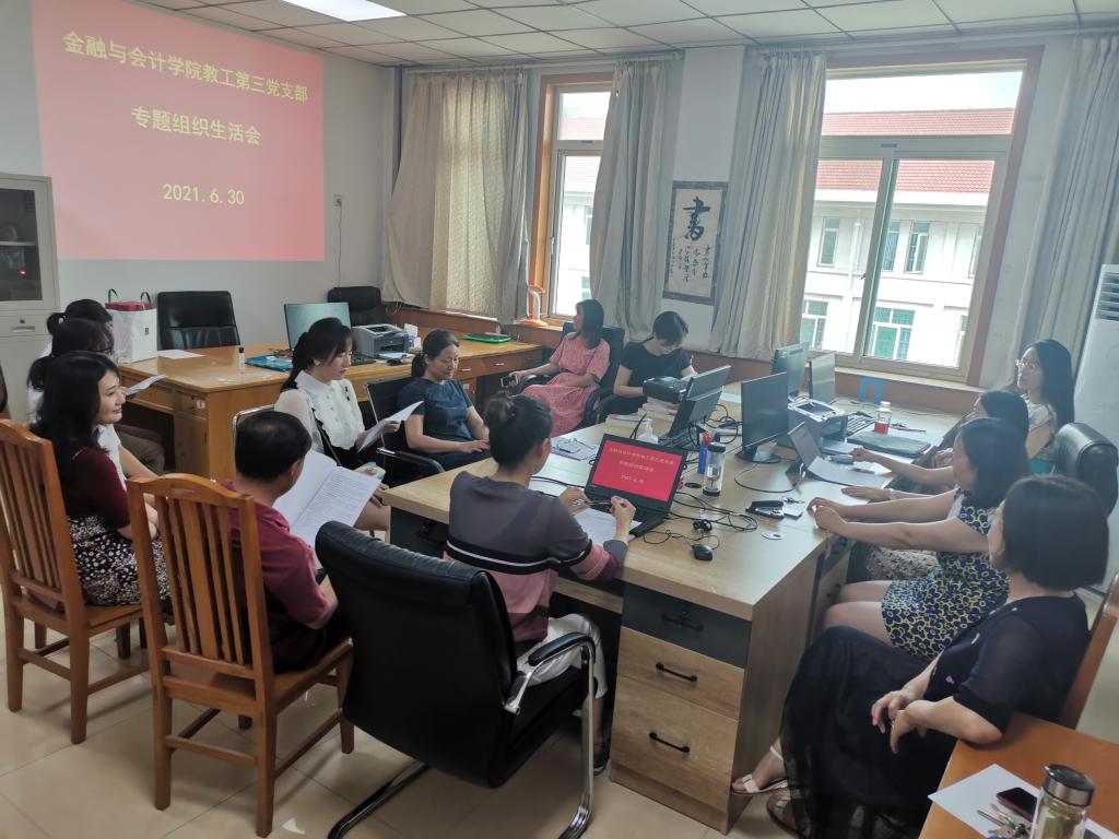 按照学校组织部《关于开展2021年6月份党支部主题党日活动的通知》精神和具体要求,6月30日下午,beat365官方网站教工第三党支部在510室召开了党史学习教育专题组织生活会。会议由党支部书记崔海红主持。