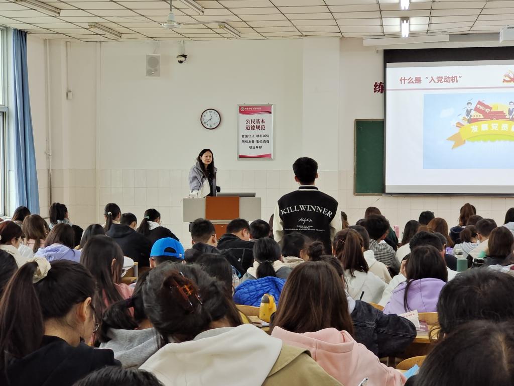 2021年10月20日中午,beat365官方网站在E309开展了“2021年第二期入党积极分子培训班”第三讲,党课主题为《端正入党动机,争做合格党员》,本次党课由beat365官方网站学生第二党支部书记葛婉老师主讲。