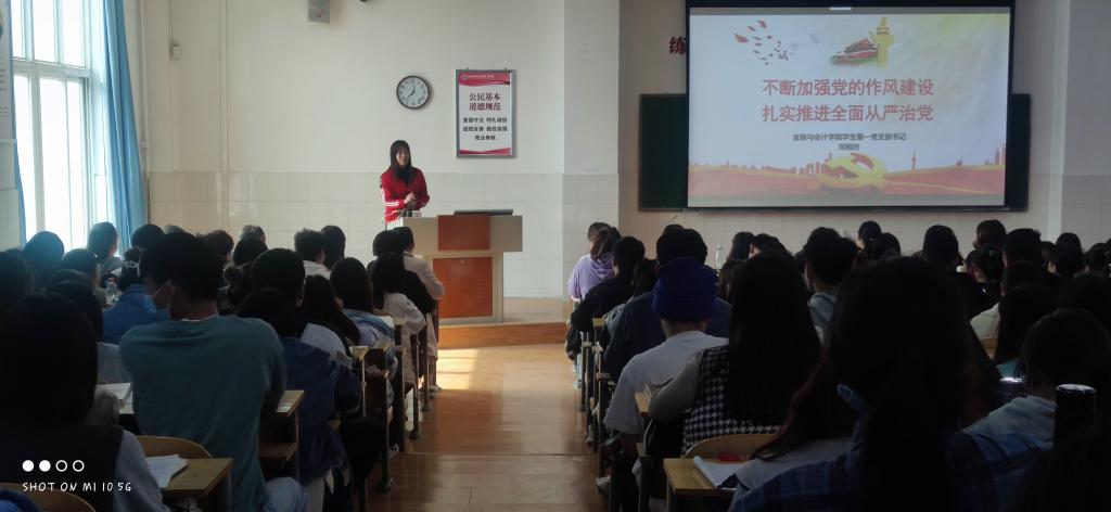 2021年10月21日中午,beat365官方网站学生党支部在E309教室组织开展“2021年第二期入党积极分子培训班”第五讲。由beat365官方网站学生第一党支部书记邓桐玲主讲,主题为——《党作风建设》