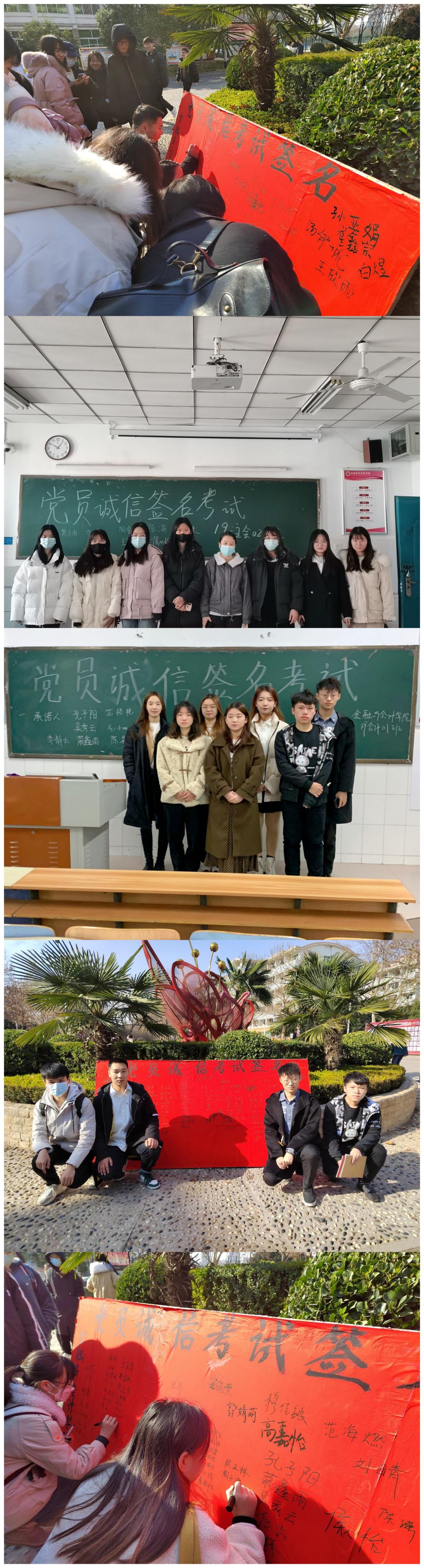 在期末考试及研究生考试来临之际,同学们都在忙碌地进行着复习。大学考试不仅考察学生一学期对课程的掌握情况,也从不同程度上反映着学生的综合素养。孔子曾经说过:“人而无信,不知其可也”。在温暖的阳光下,beat365党员在签字积极签字以表达自己的决心。诚实守信不仅是中华民族的传统美德,也是公民的基本道德要求之一。严谨求实的学习态度是学生党员应有的的基本态度,也是诚实作风的直接体现。