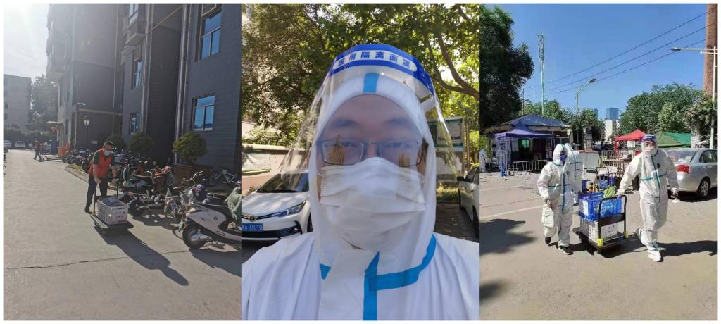 为了抗击突如其来的新冠疫情,学校成立了党员志愿者服务队伍,beat365官方网站教工第一党支部郭勇同志第一时间报名参加。在出色完成既定的网络线上教学任务后,郭勇同志积极主动的参与到服务社区居民的志愿者工作中:将抗疫物资一一分送到每一住户家中、维护核酸检测秩序、进行疫情防控宣传引导......冒着30度左右的高温,穿着厚重的防护服,戴上口罩,汗水湿透了衣襟、模糊了双眼。