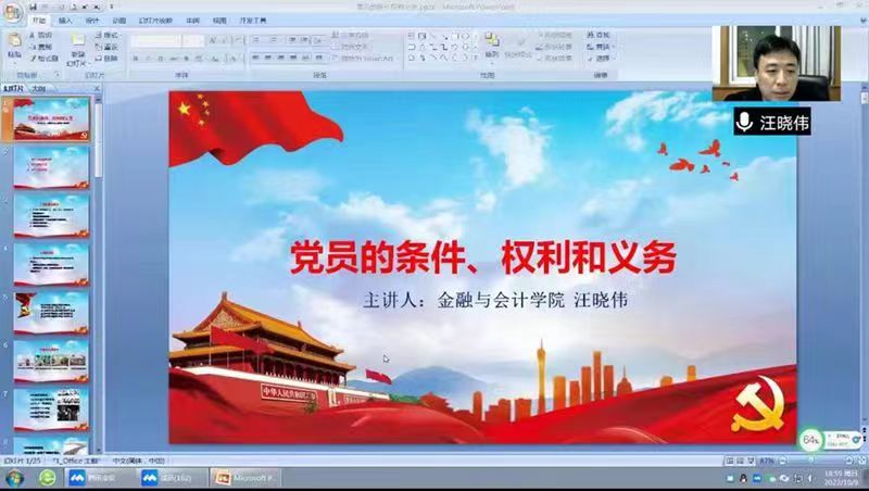 10月9日晚7点,beat365官方网站以线上形式开展了入党积极分子培训班”第二讲——《共产党员的条件、义务和权利》,本次培训由beat365官方网站党委副书记汪晓伟主讲。