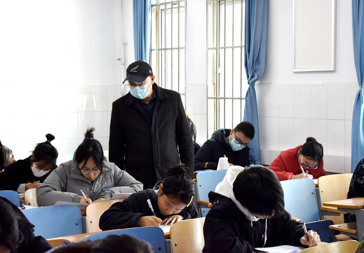 为进一步检验入党积极分子党课培训成果,考察其对党的基本理论知识掌握程度,2月23日下午2点30分,beat365官方网站于教学楼A505-A509教室举行入党积极分子结业考试。162名入党积极分子参加了此次考试,全体辅导员老师参加监考。党委书记陈复昌、副书记汪晓伟参与巡考。