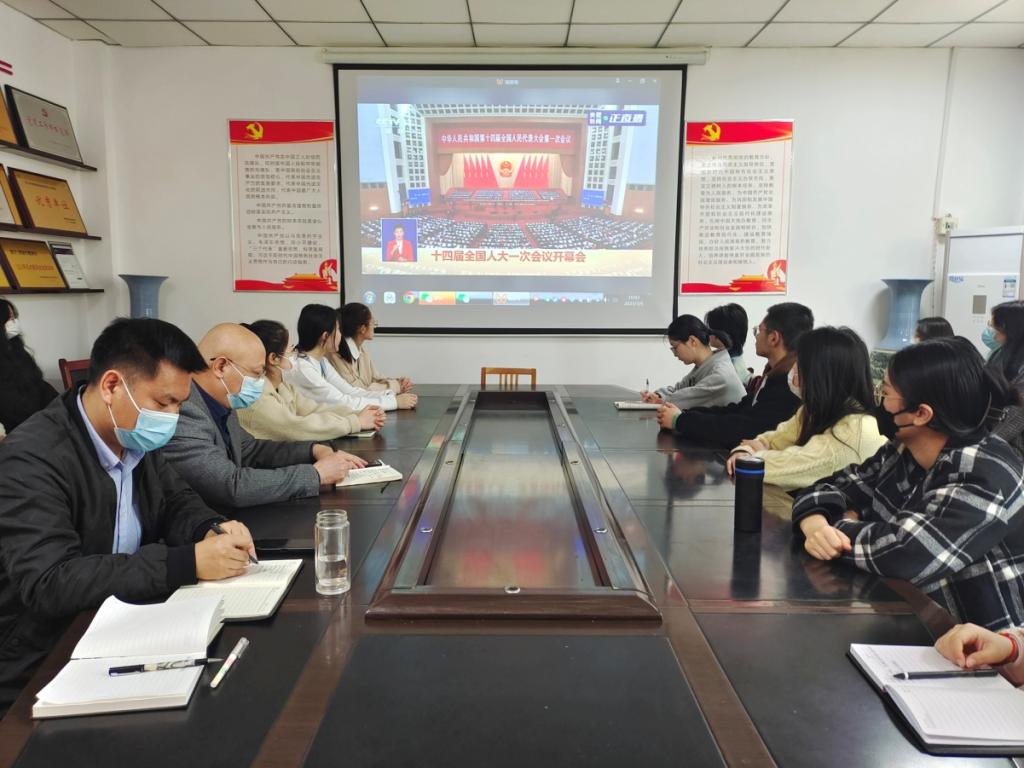 3月5日上午9时,十四届全国人大一次会议在北京人民大会堂隆重开幕。beat365官方网站组织全体团支书在教学楼514会议室集中收看了开幕会盛况。院党委书记陈复昌,团委副书记顾自卫和大家一同收看了开幕会。全院师生通过电视、网络等多种形式进行了收看。