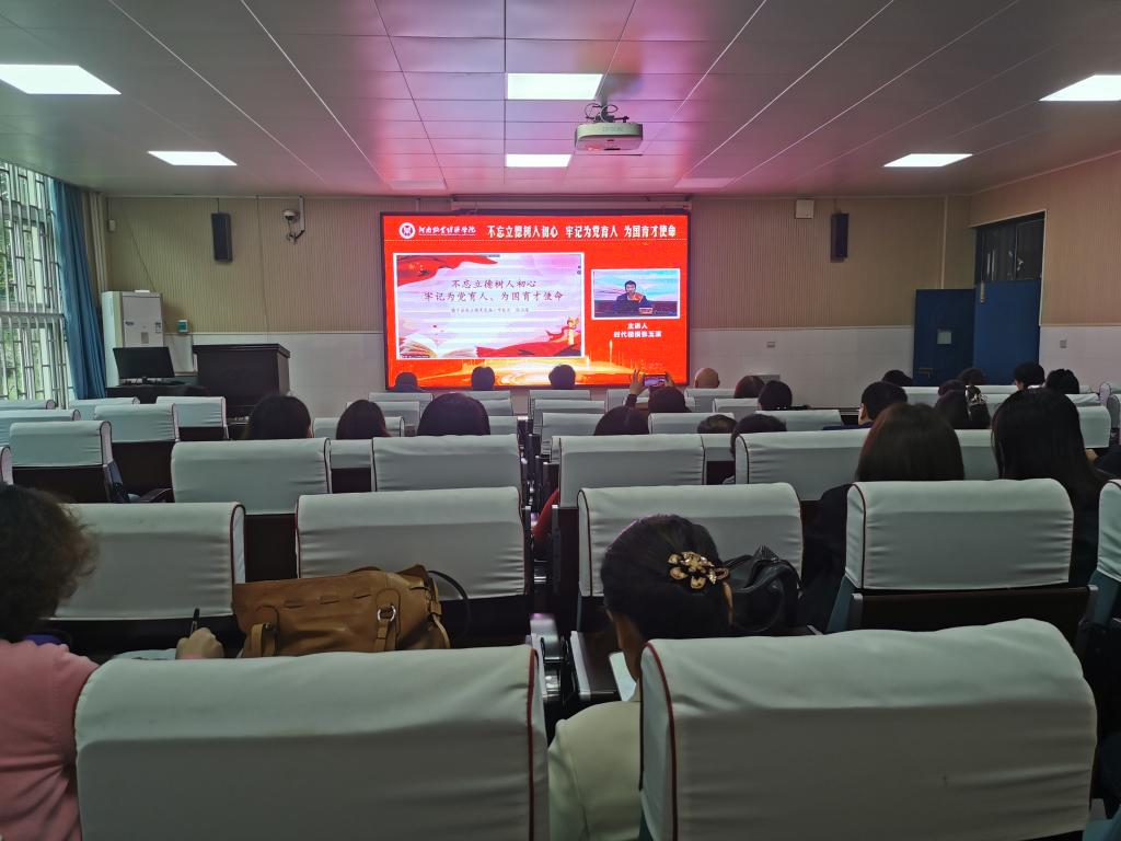 10月12日下午,beat365官方网站在英才校区综合实验楼W102会议室视频分会场组织全体教职工集体收看时代楷模张玉滚《不忘立德树人初心 牢记为党育人、为国育才使命》报告会。