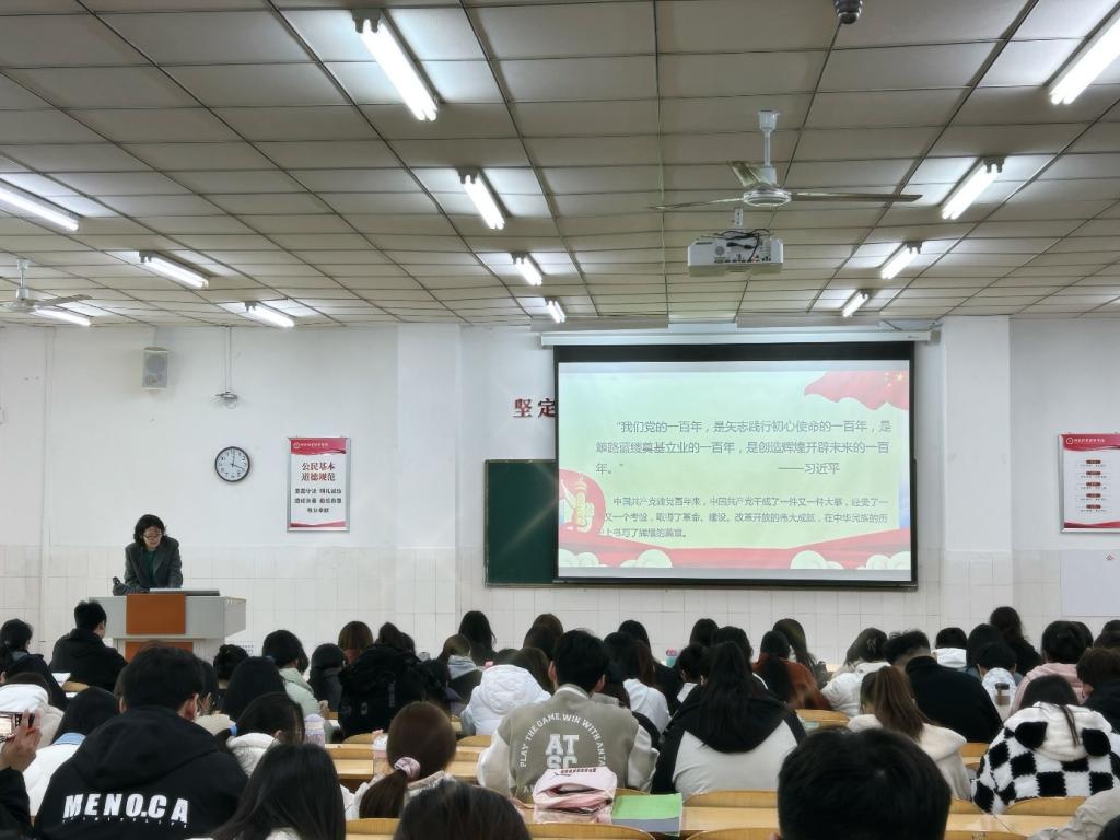 刘老师首先指出,学习党的历史就是要坚定理想信念、牢记初心使命、推进自我革命、迎接风险挑战、增进团结统一、增强信心勇气,就是要学习党的创新理论、党的性质宗旨、党的历史、党的革命精神。接着,刘老师从新民主主义革命时期、社会主义革命和建设时期、改革开放和社会主义现代化建设时期以及中国特色社会主义新时代四个阶段梳理了中国共产党历史的基本脉络,通过一个个人物、一件件事例展示了中国共产党带领中国人民完成开天辟地的救国大业、改天换地的兴国大业、推进翻天覆地的富国大业、实现惊天动地的强国大业的百年历程。刘老师强调,百余年来,中国共产党走过的波澜壮阔征程,是中国近现代以来历史最为可歌可泣的篇章,学好党史、用好党史,从党的历史中汲取智慧和力量,弘扬伟大建党精神,传承红色基因,赓续红色血脉是我们党的优良传统。