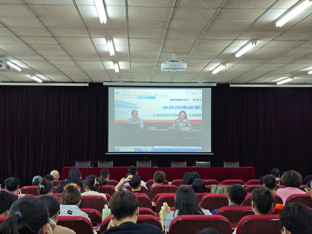 最后,与会人员认真观看了学校举办的党纪学习教育读书班专题辅导报告直播,聆听专家报告,深入学习领会《中国共产党纪律处分条例》。