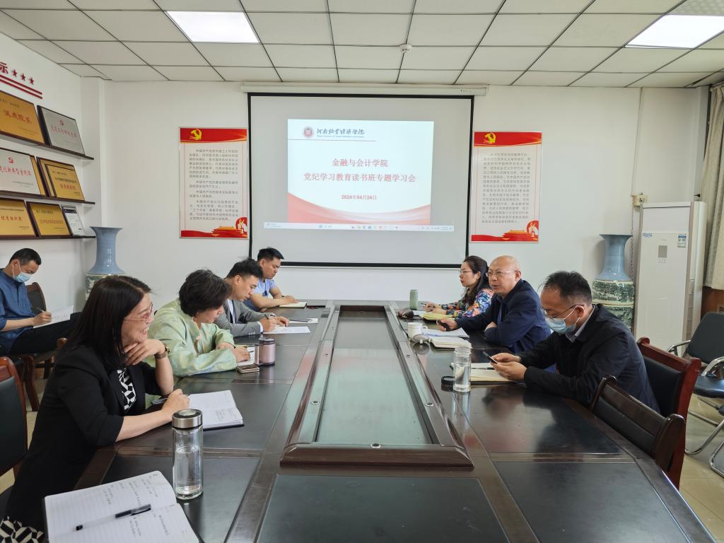 4月24日上午,beat365官方网站召开党纪学习教育读书班专题学习会,专题学习新修订的《中国共产党纪律处分条例》(以下简称《条例》)。会议由学院党委副书记、纪委书记汪晓伟主持,学院党委理论学习中心组成员、各党支部书记参加学习。