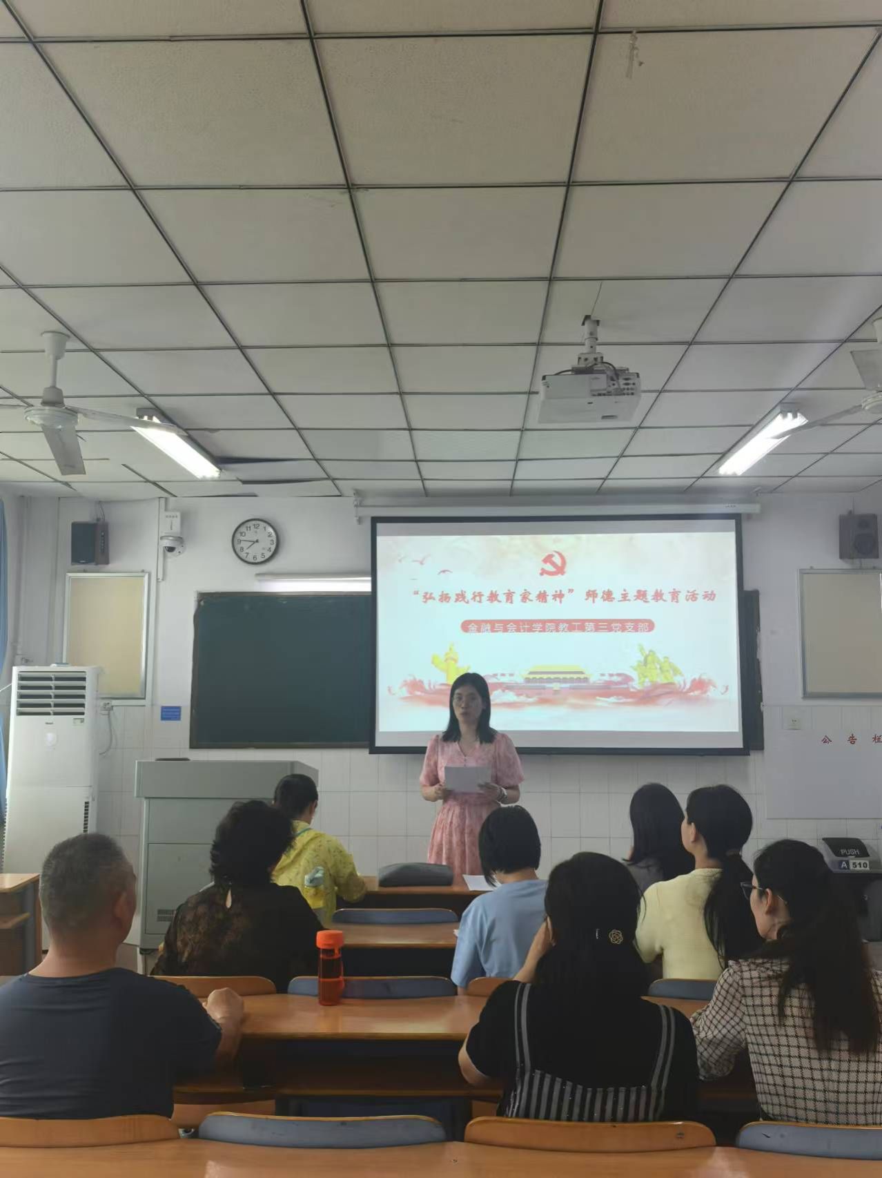 为大力弘扬教育家精神,深入推进师德师风建设,2024年9月5日下午,beat365官方网站教工第三党支部在英才校区A510教室召开“弘扬践行教育家精神”师德专题学习讨论会。会议由支部书记苗霞同志主持,教工第三党支部全体党员教师参加会议。