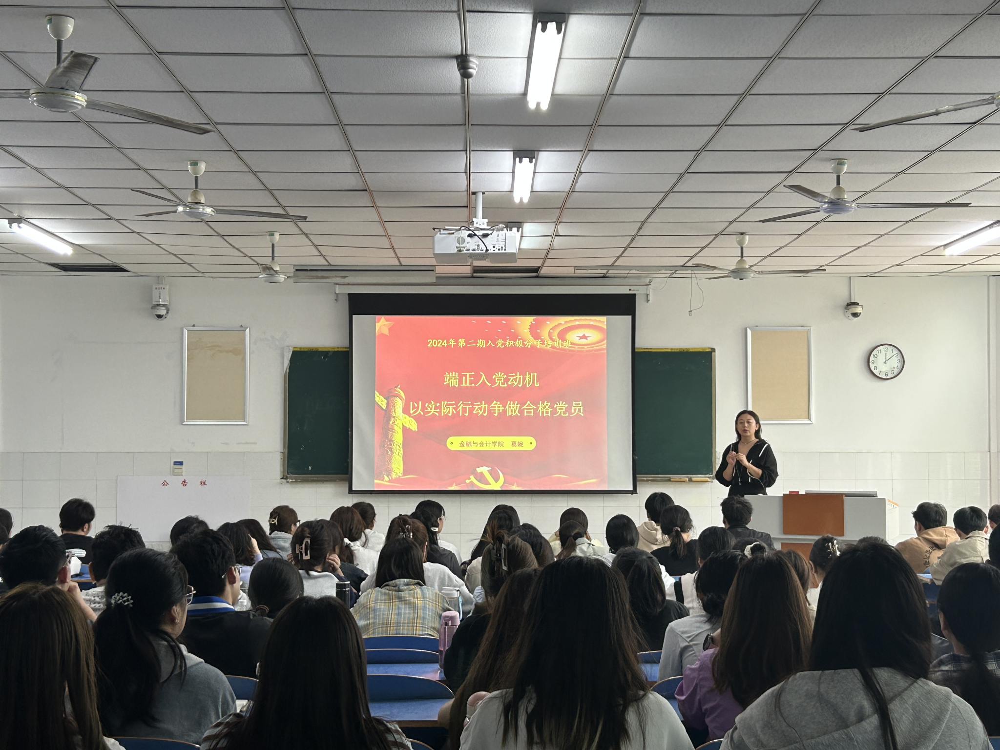 为进一步提高入党积极分子思想觉悟,端正入党动机,10月16日中午,beat365官方网站在E205教室举行2024年第二期入党积极分子培训班第四讲——《端正入党动机以实际行动争做合格党员》,本次党课由学生第二党支部书记葛婉主讲。