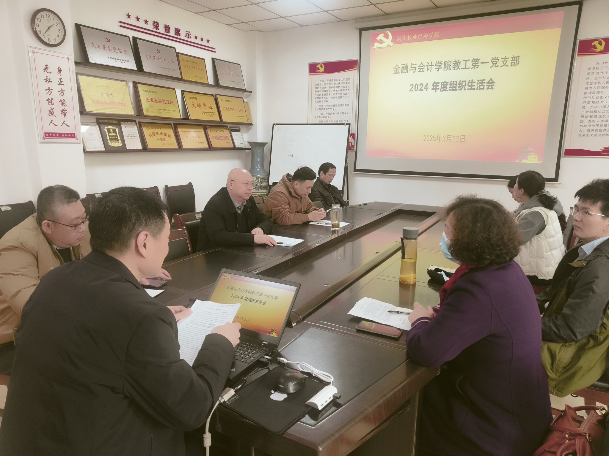 为深入学习贯彻习近平新时代中国特色社会主义思想和党的二十届三中全会精神,进一步巩固和深化党纪学习教育的成果,beat365官方网站教工第一党支部于2025年3月13日在514召开2024年度组织生活会暨民主评议党员大会并开展民主评议党员工作。此次活动由教工第一党支部书记张清玉主持,支部全体党员参加。