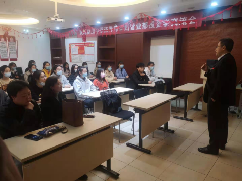 首先,中原证券营业部总经理王天鹏对中原证券的发展历程、股东构成、公司架构和主营业务进行讲解,进而介绍了中原证券各个主要部门的岗位职责和主要业务流程,并对同学们专业学习过程中遇到的各类证券产品进行了深入浅出的讲解,阐述了在现实业务经营中这些产品的交易模式和市场发展情况。之后,由营销总监徐青利全面地介绍了营业部各部门负责的主要业务及工作开展模式,并且在提问环节耐心并且专业地解答了同学们对于证券投资方面的一些问题,让同学们对于证券投资有了更深的了解。接下来,同学们向证券交易部门的负责人学习了日常的业务操作模式,相关工作人员针对同学们学习过程中产生的专业问题进行了交流解答。最后,在在徐经理的带领下,老师和同学们参观了中原证券营业部办公区,让同学们能够亲身感受到证券公司的工作氛围和工作环境。