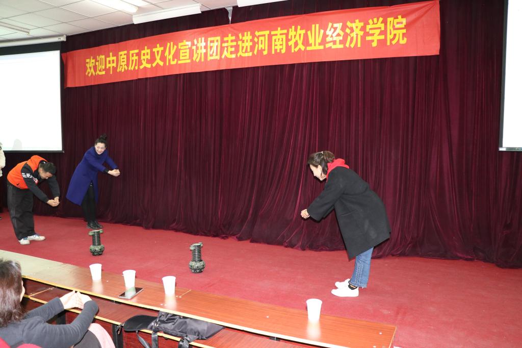 2月27日下午,河南博物院中原文化宣讲团在河南博物院社会教育服务部主任、文博副研究员林晓平带领下走进河南牧业经济学院金融学院课堂,结合beat365典当专业课程安排,给学生做了一次精彩的宣讲。本次宣讲现场气氛十分热烈,宣讲员带来了从春秋战国到明清时期的名贵展品和游戏器材,为同学们讲解文物的由来、历史价值和古代文明礼仪知识。