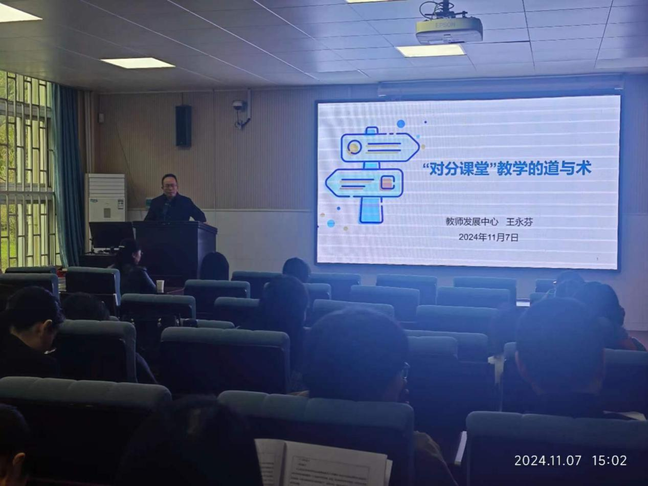 为不断更新beat365教师教育教学理念、探索课堂教学的新理念和新方法。提高教师教学技能水平,助力beat365教育教学高质量发展。由beat365和教师发展中心主办的专题讲座《对分课堂教学的道与术》于11月7日(本周四)下午3点于英才校区w102顺利开展。本次讲座由beat365教师发展中心主任王永芬教授主讲,由beat365官方网站院长贾宪军主持,全体教师参加了本次讲座。