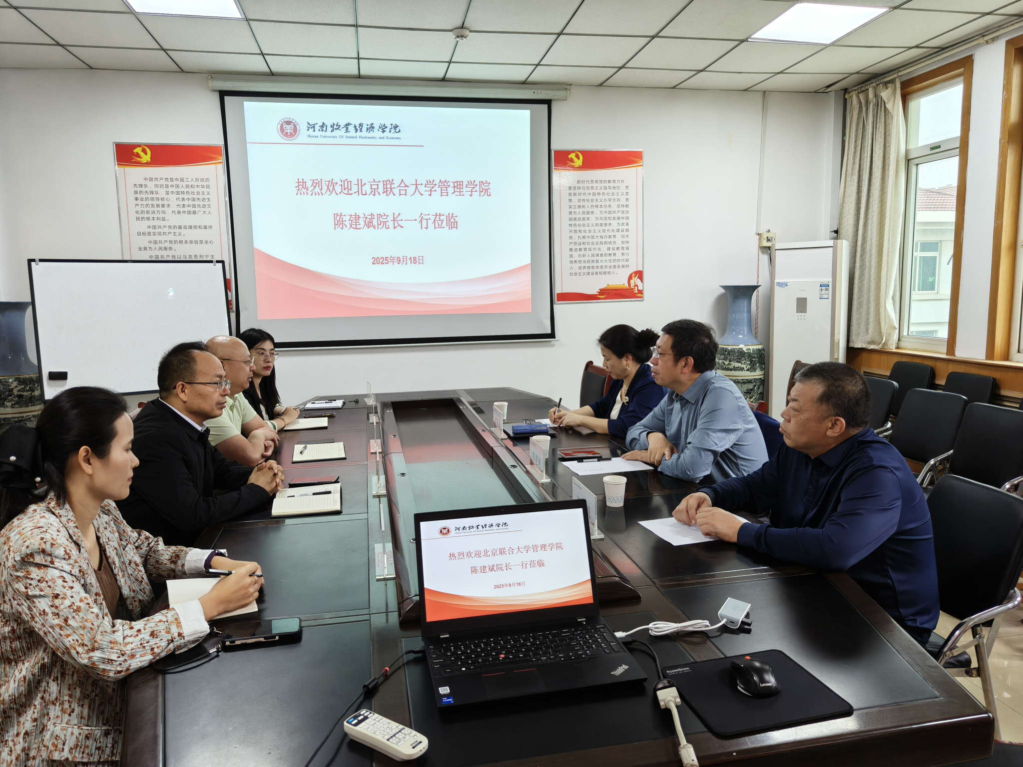 9月18日,北京联合大学管理学院院长陈建斌、财务管理系主任尹夏楠、科技与研究生培养办公室副主任任旭刚一行3人莅临beat365,围绕研究生招生、学科建设、校际合作等议题展开深入交流。金融会计学院党委书记陈复昌、院长贾宪军、相关专业教研室主任陪同调研并参与座谈。