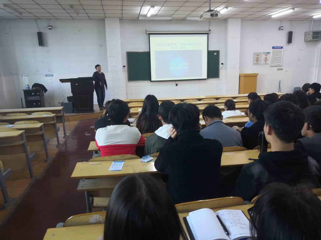 11月08日下午三点半,金融学院汤晓阳教授在E309为18级投资学班的学生做了题为“互联网金融背景下普惠金融的发展”的主题讲座,讲座由金融学院副院长王培玲主持。
