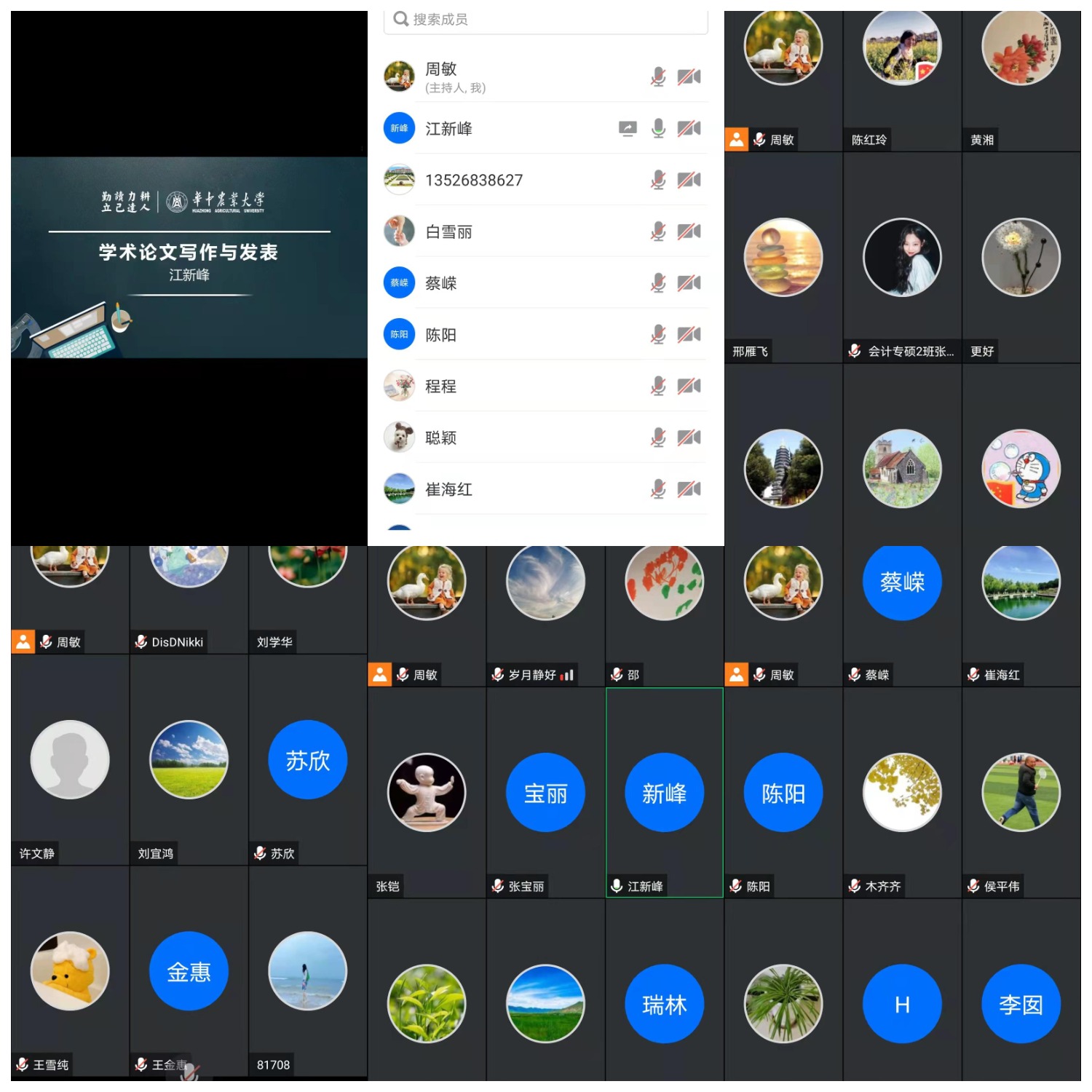 12月10日下午,beat365官方网站特邀华中农业大学PAcc中心副主任,中国慈善联合会竹林学者江新峰教授,在腾讯会议为beat365教师作了题为“学术论文写作与发表”的专题讲座,讲座由beat365官方网站副院长邵翠丽主持。
