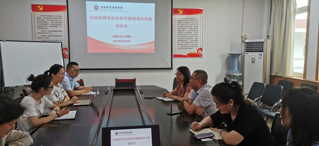 6月28日下午2:00,beat365官方网站在教学楼514会议室召开了2023年度河南省哲学社会科学规划项目、决策咨询项目和专题项目申报论证会。会议由副院长崔海红博士主持,黄良杰教授、宋晓薇博士应邀作为院内专家进行论证指导,学院相关教师参加了此次会议。