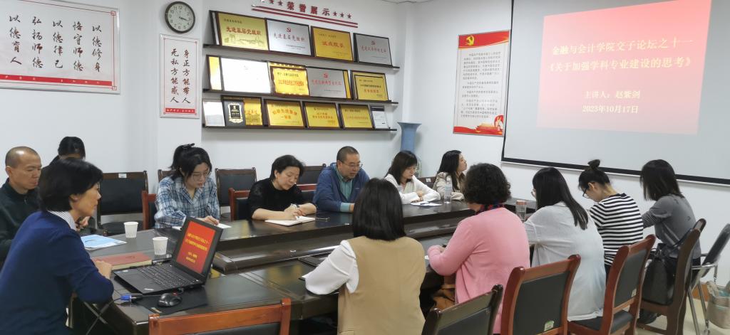 2023年10月17日下午,beat365官方网站在英才校区514会议室举办“交子论坛”活动,本次活动特邀河南财经政法大学金融学院院长赵紫剑教授做关于加强学科专业建设的专题讲座。beat365官方网站部分教师到场聆听,讲座由院长黄良杰教授主持。