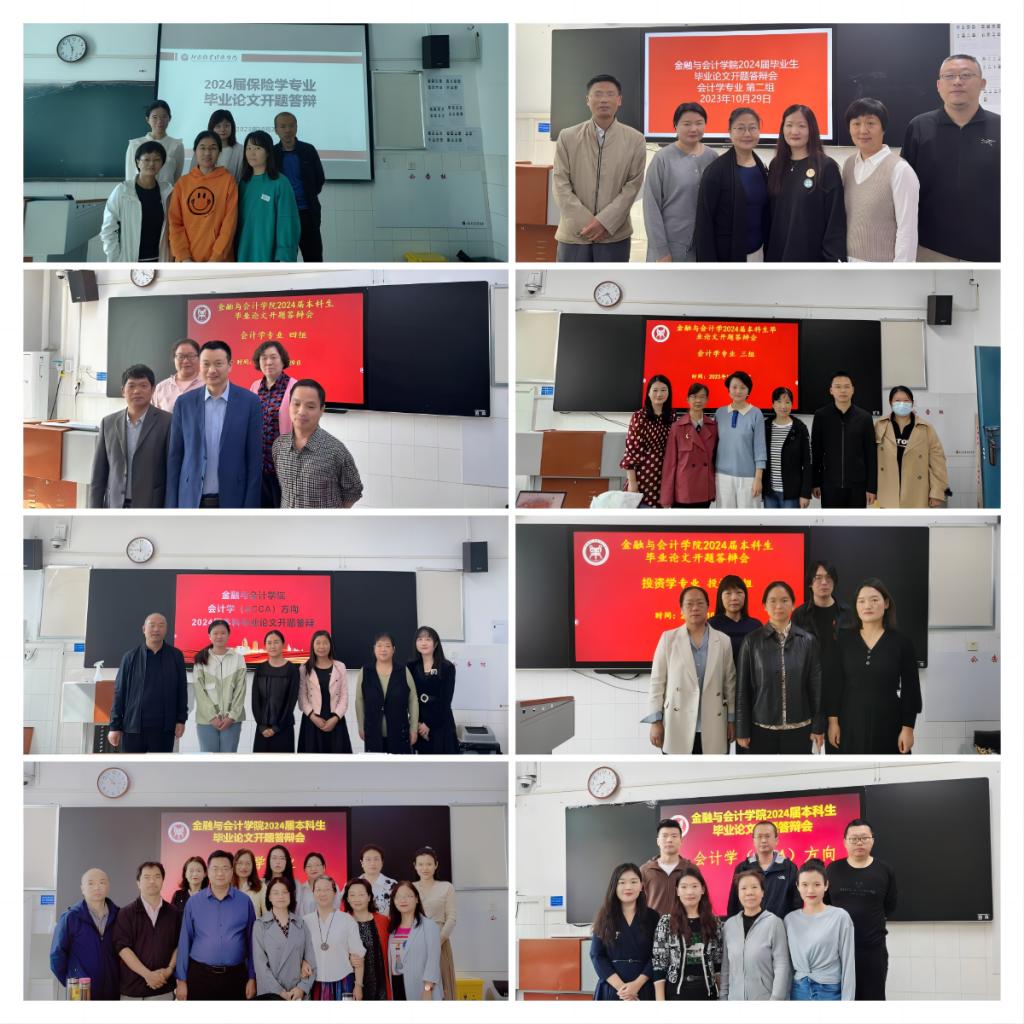 2023年10月26日至10月29日,beat365官方网站在英才校区教学楼进行了会计学、财务管理、审计学、投资学、金融学、保险学等六个专业的本科毕业论文开题答辩,共19个答辩小组,1151名学生参加了本次开题答辩。